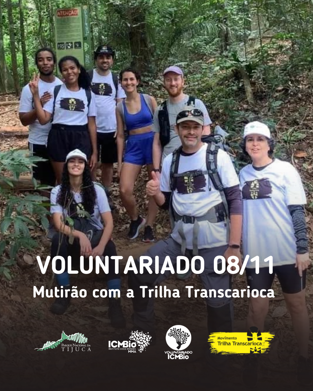 O Programa de Voluntariado do Parque Nacional da Tijuca e o Movimento Trilha Transcarioca convidam o público para participar do mutirão 0121/2025 do voluntariado. Ele será realizado no sábado, 8 de novembro, e terá caminhada por trilha, remoção de espécies exóticas invasoras, plantio de espécies nativas da Mata Atlântica na área da Cascatinha Taunay, no setor Floresta da Tijuca - que é acessível pela Praça Afonso Viseu, no Alto da Boa Vista.